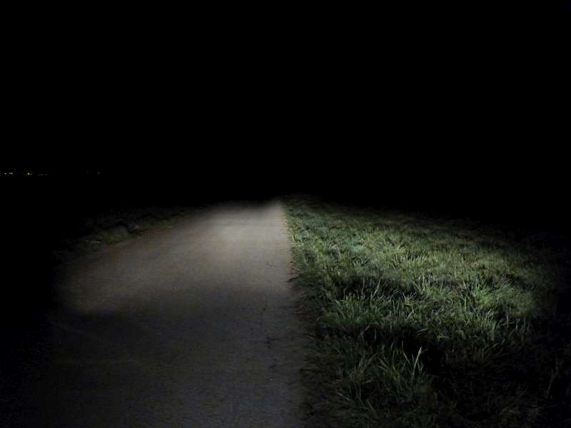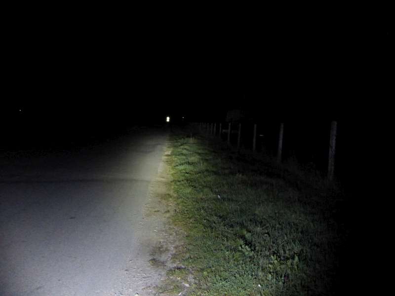 Jasne viditelne, ze svieti len pred autom, kde je prepaleny bod a vo vacsej vzdialenosti tma.