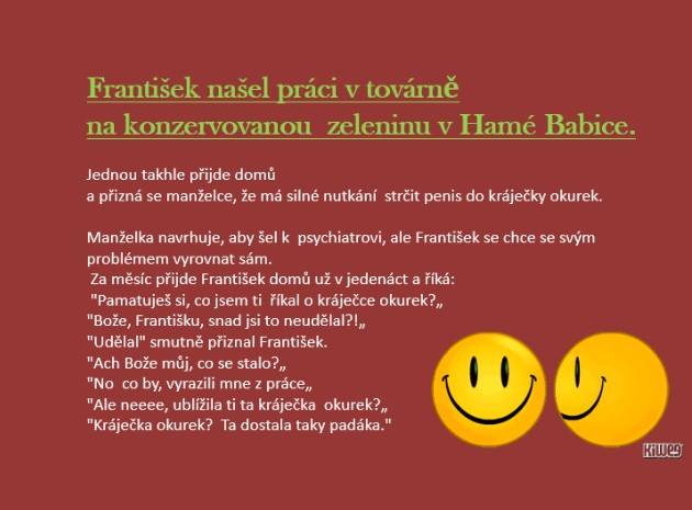 „Kdo mi vyjmenuje aspoň tři Shakespearova díla?“ ptá se dětí paní učitelka. Hlásí se jedině Pepíček, a ač se učitelka bojí, že z Pepíčka vypadne zase nějaká sprosťárna, nezbude jí, než ho vyvolat. „Mnoho povyku pro nic, Sen noci svatojánské a Zkrocení zlé ženy.“ „Výborně, Pepíčku, mile jsi mne překvapil.