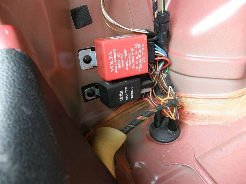 Cervene rele je vicepolove a ma na starosti bezzatezove spinani veskereho osvetleni voziku, tedy nejen mlhovky, ale i blinkru a obrysovek. Ke spinani potrebuje zdroj staleho napeti (u FF1 tazeno z pojistkovky od ridice) a signaly z napajeni zadnich svetel. Poruchu osvetleni na voziku simuluje jako poruchu osvetleni zadnich svetel (plati pro blinkry).