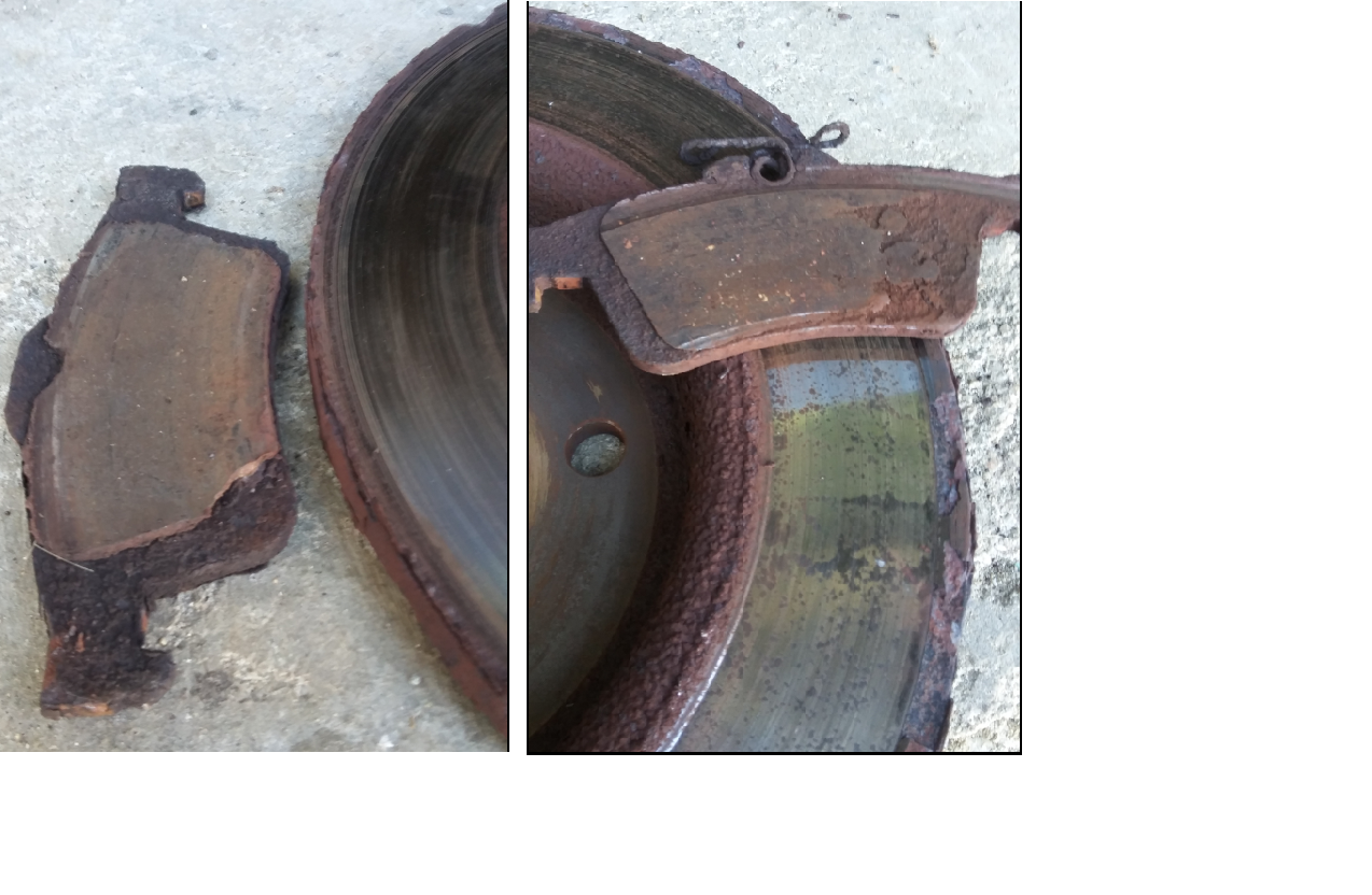 Provedena kontrola brzd. Předek je OK, kotouče hladké a rovné, brzdové destičky ještě 5-6mm. Ale zadní kotouče nicmoc, přidřené třmeny. Pokusím se je zarovnat a pokud se nevejdu do tolerance, nechám dát nové, plus destíčky a oprava třmenů.