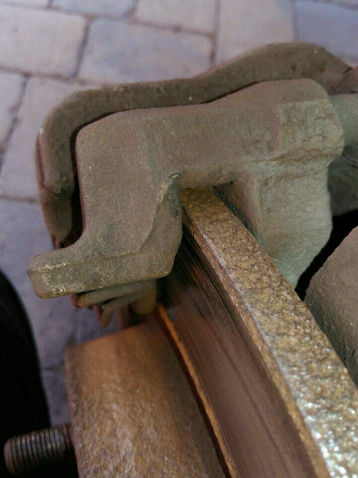 Textar (?) dava do tych vyrezov na doskach, ktore dosadaju na vodiace plochy na strmeni presne tu istu hmotu, ktora je aj na zadnej strane dosky smerom k piestiku/strmenu. Aby to tam neprihrdzavelo.