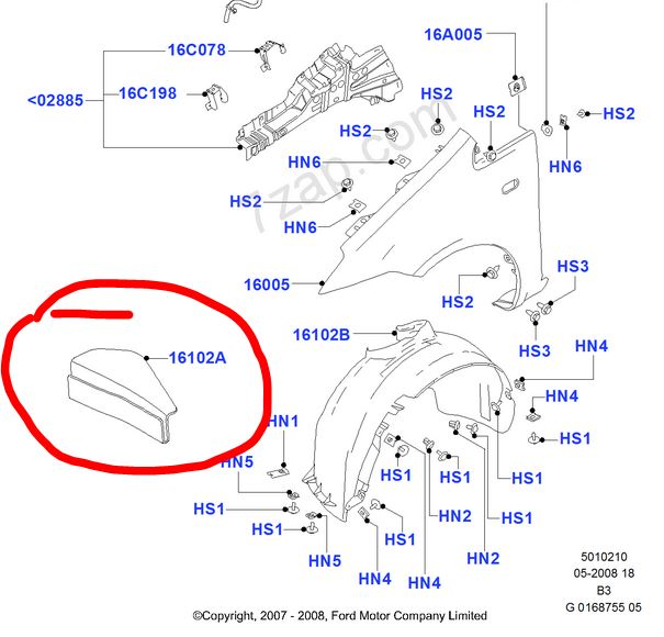 Pracovně ten "bazmek" nazval, kvůlivá umístění, "podzástěrka". Ono je to vlastně za, vykrývá to místo mezi plechovým a plastovým podběhem kola, viz níže.