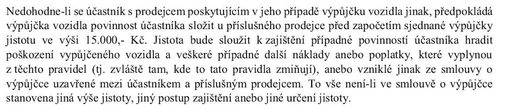 Po mně prý budou chtít jen 5.000 Kč. Jinak kauce mě nepřekvapuje. Cca dva roky zpět jsem si půjčoval na dva dny Tuscona ( :oops: ) a chtěli 20.000 Kč.