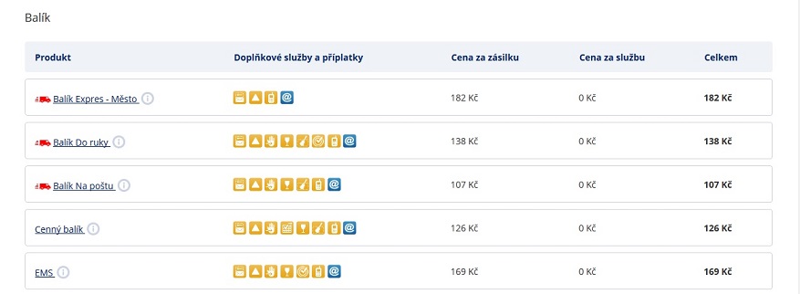 řešil jsem reklamaci a posílal balík s dílama, pojištěné na 3 000 kč, cena 115 kč, o týden později jsem posílal poloviční balík, lehčí, na stejnou adresu, pojištěný jen na základních 500 kč a cena 125 kč