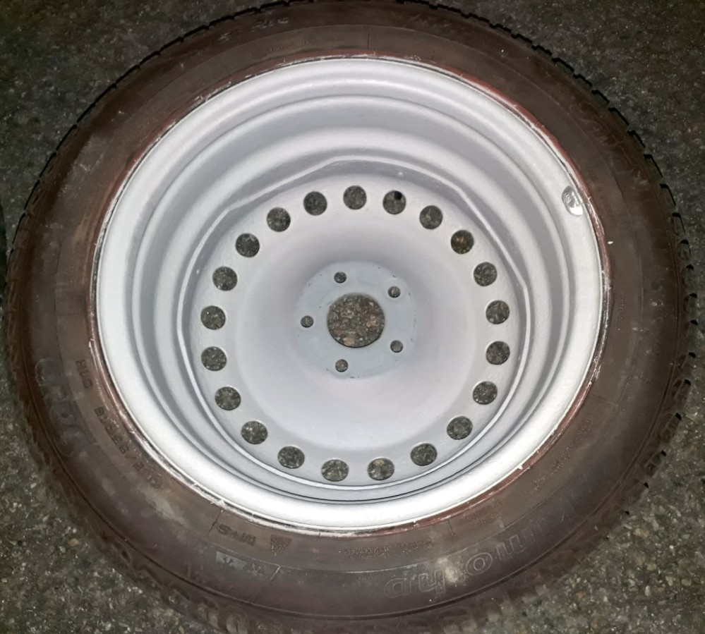 - výchozí stav disků byl mnohem lepší, než v případě těch zimáků, co jsem stříkal na stříbrno, takže i výsledek je mnohem lepší (nebylo potřeba vyrovnávat velkou drsnost způsobenou masivní korozí)