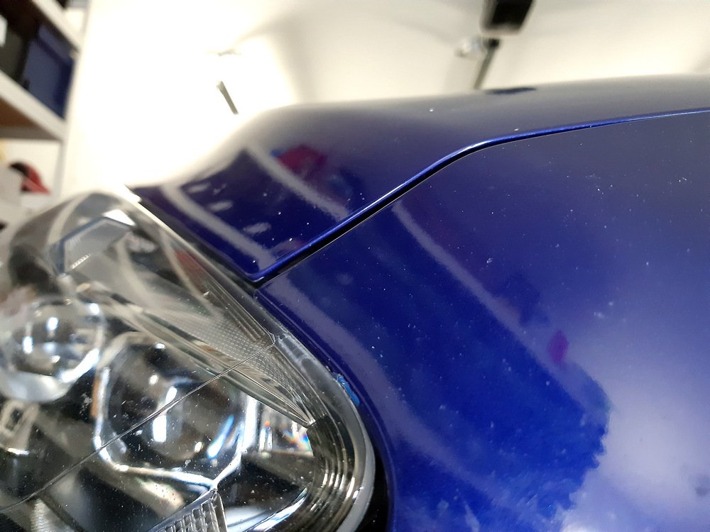 . Slícování u světel, se kterým jsem spokojen a spára kapoty a nárazníku 6 mm na krajích a asi 7,5 mm uprostřed. Líp už to asi nejde.