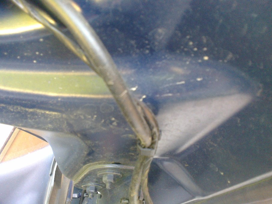 ... s tim, ze kabel vyvedeme k levemu pantu nad motorovou pojistkovnici kolem hadicky s strikovaci kapalinou (pred ridice):