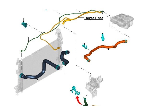 Také jsem pátral po odvzdušnění a nic nenašel. Jsou tam dvě odvzdušňovací trubičky. Jedna jde z boku motoru nad převodovkou , a je napojená (u starších verzí) na to "šikmé téčko"co jde od chlazení turba. To téčko co rádo praská a způsobuje destrukci motoru. Druhá je napojená na chladiči a jde do nádržky.