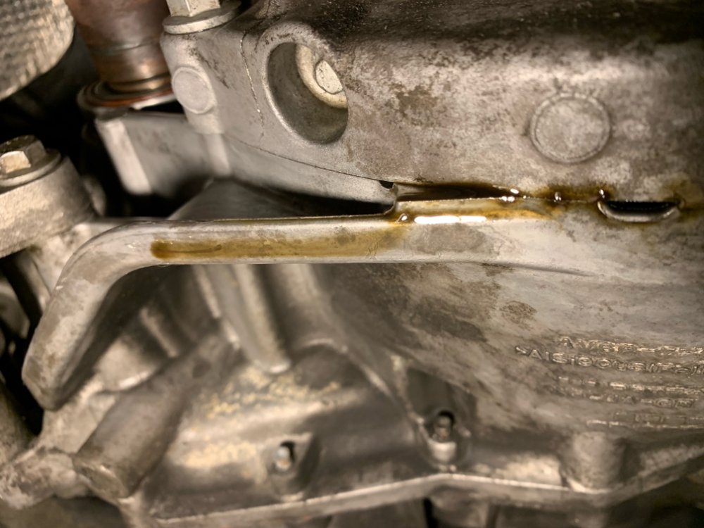 jsem po opravě potkaného motoru, jakmile se mi vrátilo auto, za pár dnů jsem zjistil, že uniká (kape) olej z motoru. Opravu jsem reklamoval - chlapíci tvrdili, že kapalo nějaké těsnění u převodovky a že to opravili. Dnes jsem sundal kryt, že vyměním olej a byl jsem nemile překvapen, že únik je teď ještě větší než předtím. Olej vytéká z díry viz foto, nejvíce u zahřátého motoru. Myslíte, že se může jednat o přepad?