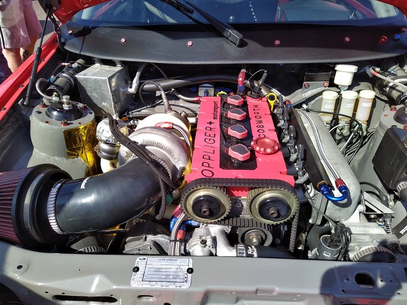 Pořád mě to ale táhlo opětovně do depa. Po cestě do depa vidíme stát bílý Escort RS Cosworth a červený Escort RS Cosworth upravovaný od italského specialistu na Cosworthy Oppligera s hodně velkým turbem Borg Warner. Dále na place stojí ona známá placka, bestie skupiny B. Ford RS200 - kdo by byl překvapen, samozřejmě na značkách. Také jsme našli místní zběsilý Focus Mk1 Combi od Howea. Překopaný na 1,6 EcoBoost z Fiesty. Auto hodně zajimavé z blízka a hodně fungující na trati. Teda, když zrovna jede, protože chudáka Howea dotáhli před depo po tom, co totálně rozthal přední slick. Takže se vyměnilo kolo a pokračoval v další jízdě. Na place jsme viděli další zajímavý projekt. Focus MK1 ST170 - přestavěný bodykitem na RS. Motor 4,0 V8 Toyota/Lexus, dvě turba Td04 z Volva S60, převodovka z BMW a zadní náprava z Nissanu 350z s diferenciálem s omezeným prokluzem. Výfuky v prahu před zadním kolem a to vše v červené barvě, a ano, na značkách.