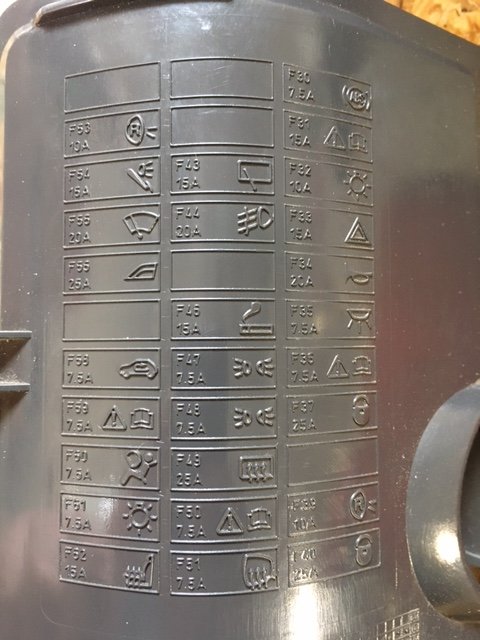 ahoj, tak jsem se zase vrátil k nesvítící SPZ, mám tu foto víka pojistek. Která je tedy pro SPZ? F62 je vyhřívání sedadel a F52 vůbec není