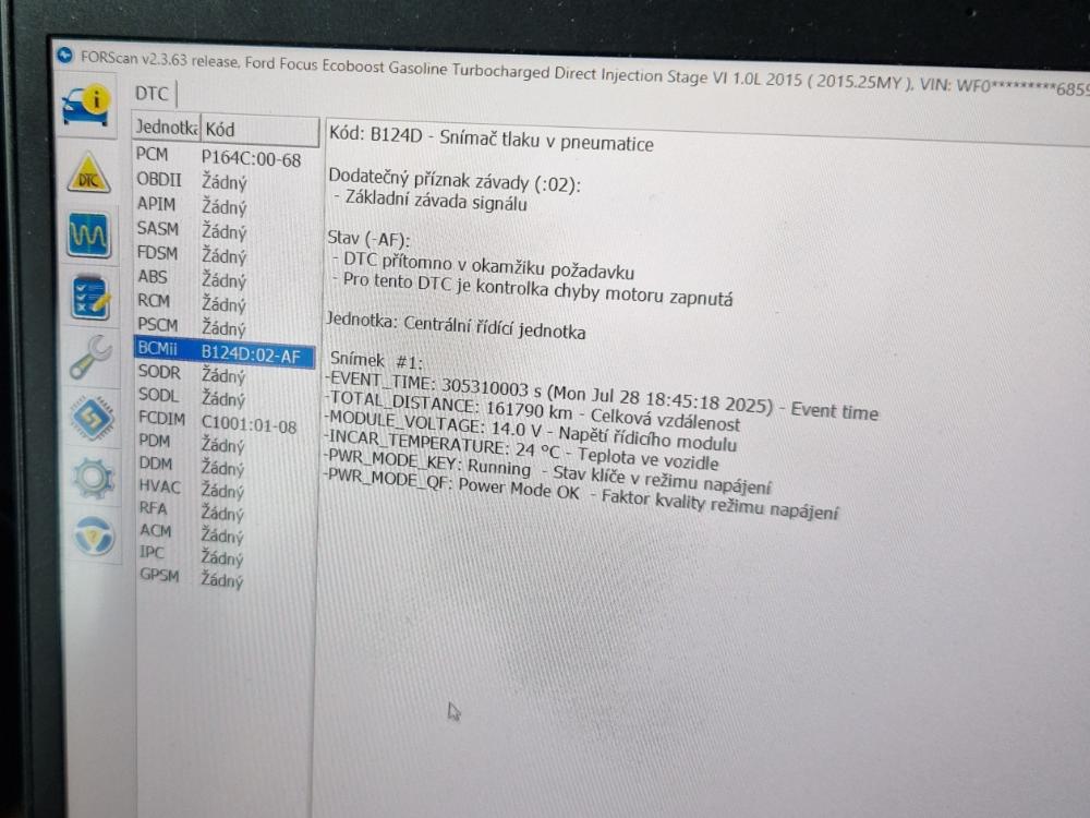 Měl bych taky dotaz ohledně chyby B124D. Koupil jsem nedávno FF mk3 2016, prvních 500km bez problémů, ale pak jsem šel dofouknout pneu a od té doby mám problém ohledně komunikace s čidly. Po vyčtení diagnostiky jsem, zjistil, že mám i chybu B124D, které tam při koupi nebyla, teď ale nejde smazat a hláška o chybě senzorů je aktivní skoro pořád. Dneska jsem po přečtení diskuse zkusil vyčíst live data. Co mi překvapilo, je že mám pro všechny 4 čidla stejné ID. Je tedy možné že by bylo špatně spárované a mohlo by pomoci je napárovat znova, ať už metodou upouštění tlaku nebo krabičkou pro reset?