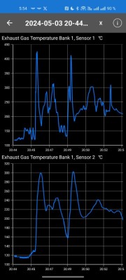 Tlak výfukových plynů za kat. : 0.1kPa na volnoběh - 5kPa když tomu vrznu ( tato hodnota nahodile skáče při volnoběhu až na 655.5 kPa !!! Nejvíce na volnoběh když je to studený, a když se třepe motor bez záběru? Za jízdy pouze sporadicky.)