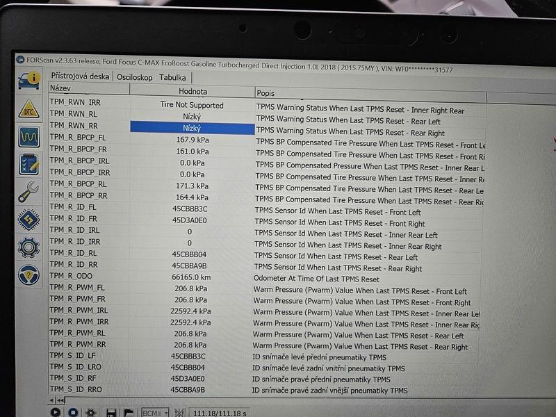 Když jsem zadal TPMS, vše vyznačil tak jsem obdržel tato data viz přílohy