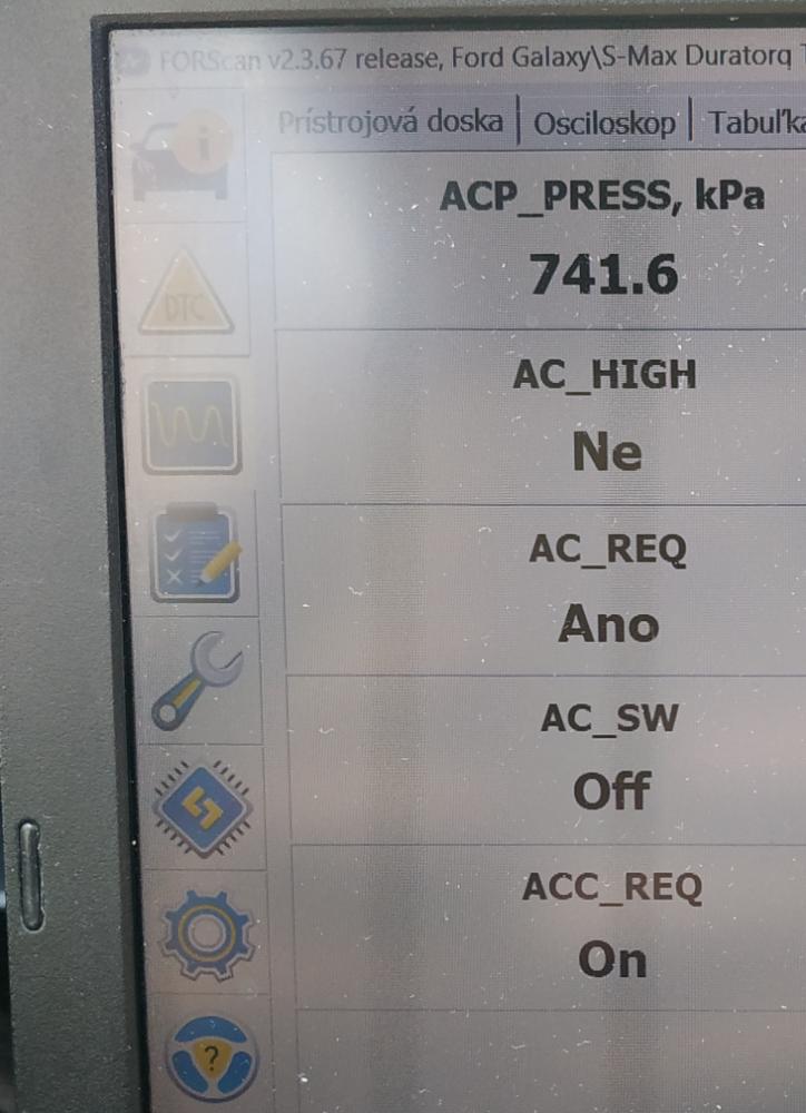 Chcel som si pozriet tlak na nizkej a vysokej strane, ale nejak to neslo. Prikladam foto.