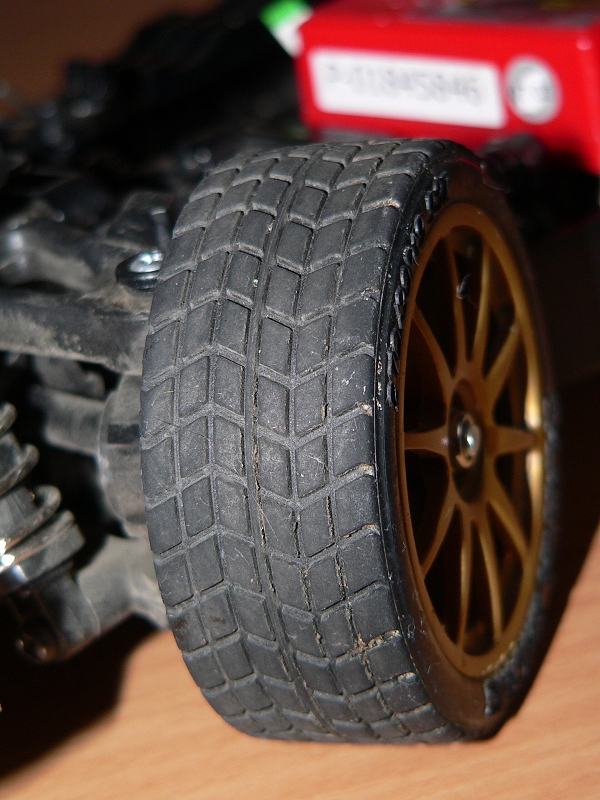 Tamiya F1 1:10, koupena uz slozena, at taky otec coby muj mechanik a hlavne ridic na zavodech (ktere se jezdili po cele republice) jen nefandi a nekouka jak tam synacek (ja) srotuje auto na trati (a castky za nove dily nebyly zrovna male) elektronika, motor tam uz je mnohem lepsi nez obycejny mabuchi 540 (asi se nastehuje do meho DTM Escorta at to ma "prdy"), regulator elektronicky s brzdou misto zpatecky, servo a prijimac obycejny, formule bohuzel ma predni kridlo nescetnekrat lepene vterinovym lepidlem v kombinaci s jednou sodou, zadni kridlo se uz vyhodilo uplne :(
