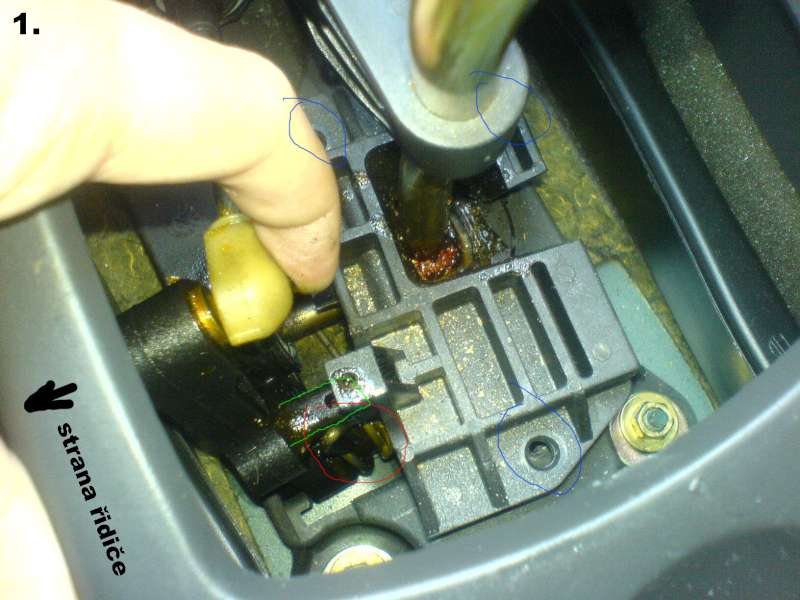 - takze po odstraneni hlavy radici paky a krytu spatrime zaplombovanou prevodovku a pod vrchnim plastovym krytu vydime kousek nasi pruziny