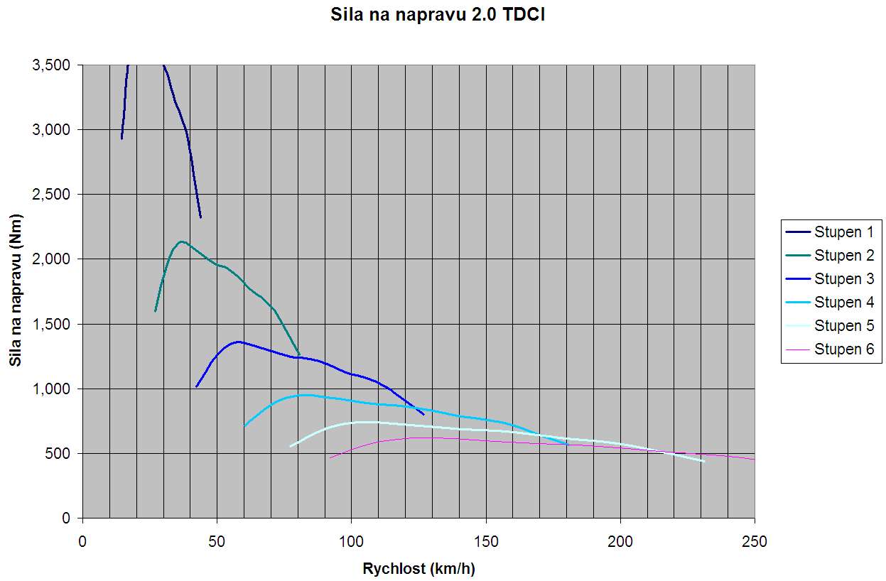 - sila posobiaca na napravu pri jednotlivych prevodoch. Tu by som vysvetlil snad len to, ze benzinove prevodovky su sprevodovane kratsie ako dieselove, teda na jedno otocenie kolesa je potrebne viac otacok benzinoveho motora ako dieseloveho motora, cim vlastne krutiaci moment na napravu sa u benzinoveho motora zvysuje a u nafty znizuje.