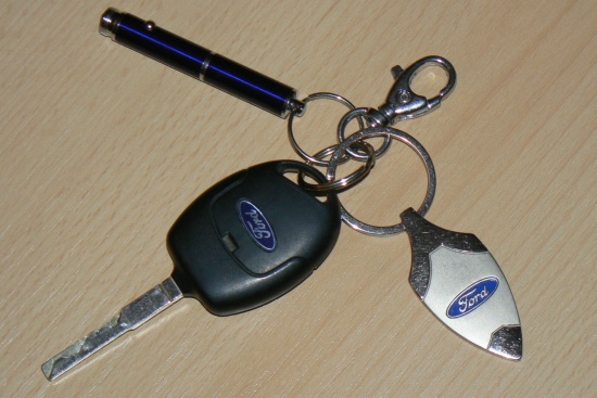 : lampička v barvě auta (stále totiž něco hledám a tak si musím svítit); karabinka (občas klíče připínám k jiným svazkům nebo na poutko).