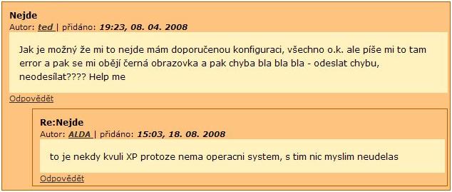 Těch hlášek je tu víc :mrgreen: Někde jsou i stránky s těmahle hláškama, bohužel nemám čas hledat a adresu si nepamatuju. Každopádně vím, že sem se tlemil jak magor když sem si to četl. Myslel sem, že počítačům rozumím tak nějak dobře uživatelsky. Ale jak jsem dočetl na co se někdy lidi servisáků ptají, tak jsem zjistil, že sem vlastně expert :D