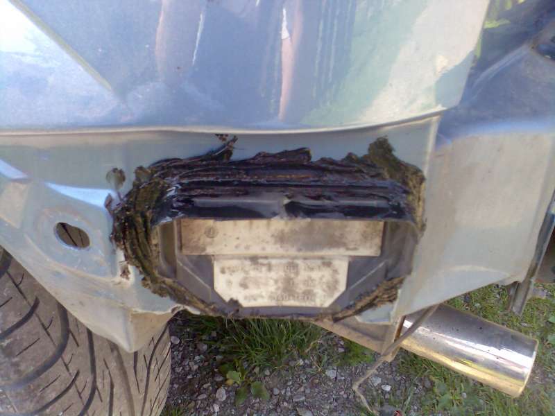 tak jsem se k tomu dneska konečně dostal,sundal jsem nárazník utěsnil to kolem toho vzduchového otvoru,ale nepomohlo to.zavřel jsem synovce do kufru ať se dívá kudy to teče stríkal jsem hadicí a furt to teče zjistil jsem že to přichází ze spoje karoserie.bude to zřejmě už od výroby buď to ošulil automat nebo někdo v práci chlastal asi :lol: je to u toho otvoru kde se spojuje zadní kufrový plech s blatníkem je to asi lisovaný spoj si myslím svařováné to nebude a dole v tom spoji je takový "snopel" bych to nazval kde se ty dva plech secvakly a zbytek je zakipaný nějakým tmelem je tam ale dírka kterou voda solidně fičí.snažil jsem se to ucpat také silikonem,ale ten se plně nespojí s kastlí,a pod ním v tom lisovaném spoji šplhá voda ven.zkusím přinést ještě z práce loctite a ucpat to tím.musím to sakra nějak ucpat :evil: