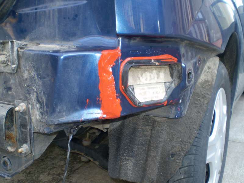 Tak len pre informaciu, mozno sa niekomu bude hodit- ako som pisal pred casom - tieklo mi do auta, voda sa objavovala v strbine v kufri na boku, odtial stekala k rezerve. So svagrom sme sa pustili do opravy: zacali polievat auto a zistili sme, ze to netecie cez horny srob 5tych dveri, ani cez srob svetla, ale niekade poza naraznik. Tak sme zhodili naraznik a zboku nasli krytku, cez ktoru sa asi vetra kufor (na obrazku je uz zhodena).