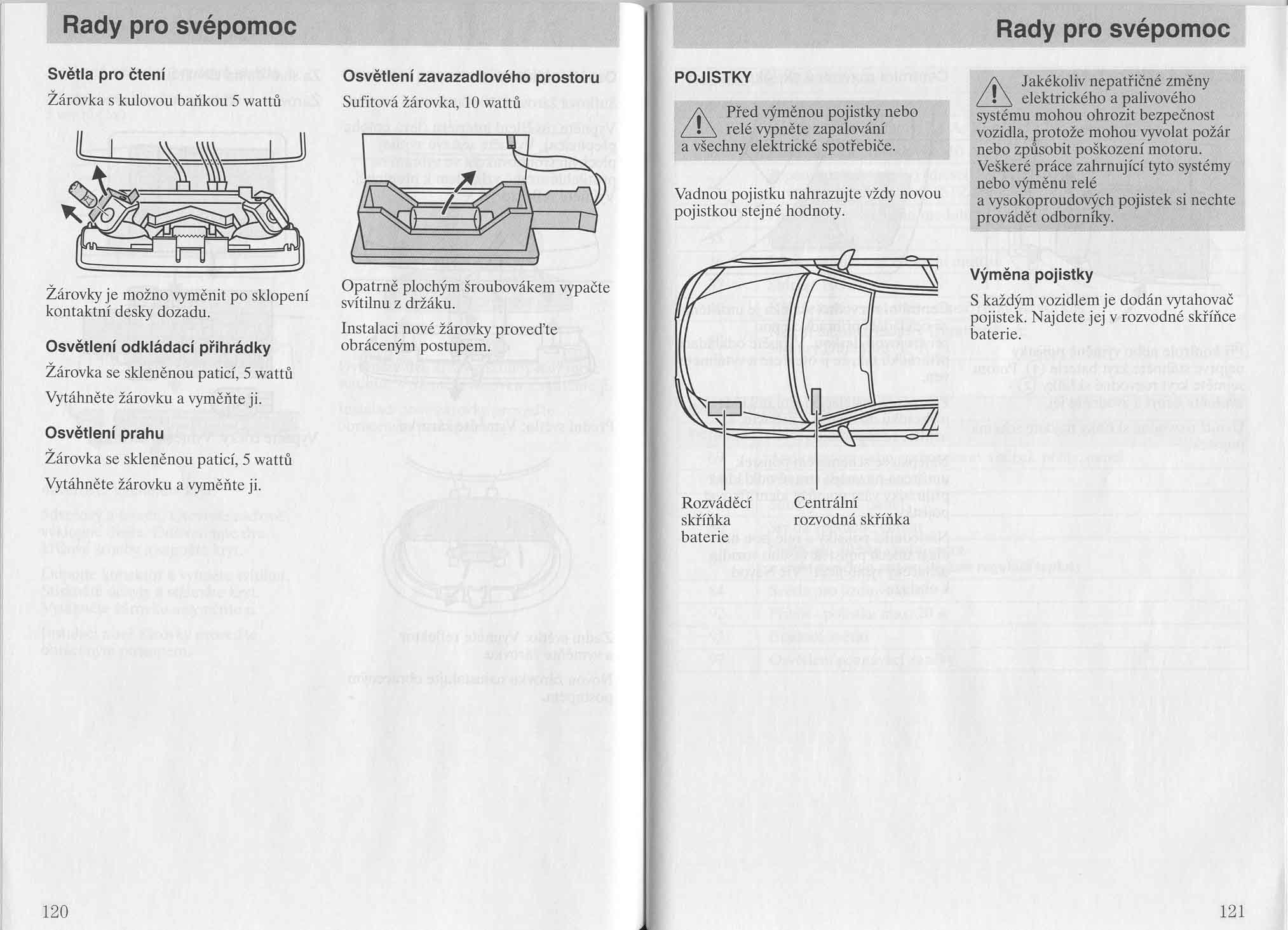 Osvětlení pod sluneční clonou: W5W (tam sem se nedival, ale tam tusim co sem nekde cetl jsou W5W