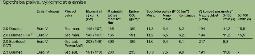 • Začíná se dodávat nový přeplňovaný zážehový motor 2.0 EcoBoost SCTi 203 k. Bude kombinován výhradně s dvouspojkovou 6st. automatickou převodovkou PowerShift.