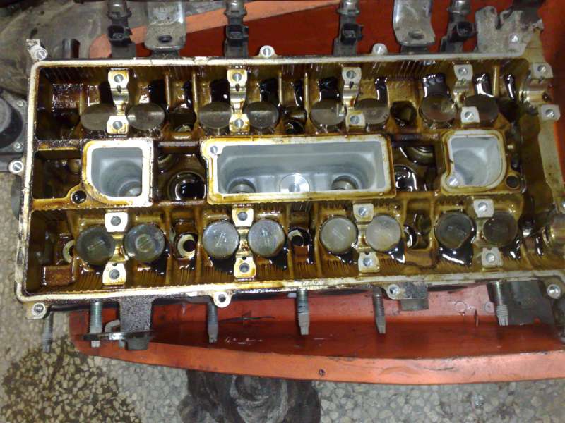Ta kaluž oleje na fotce je tam nacabraná z dolejvání.Prvně to teklo kolem svíček,nakonec to zteklo ktěm cívkám. olej je čistý - ten v motoru nebyl...