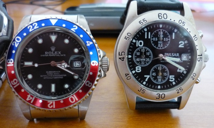 Ja chtel klasicke rucickove hodinky vhodne k noseni obleku, ale zaroven musely splnovat tyto parametry: titanovy pasek a telo, safirove sklicko, 100m vodotesnost (samozrejme, ze vim, co to znamena = jsou vodotesne na bezne pouzivani a plavani). A cenove taky rozumne (tj. do 20tis. Kc). No a vyhraly to hodinky od Seika - za 3 roky co je mam jsem je nemusel krom upravy casu serizovat a jdou porad presne, jsou lehke, odolne, diky safirovemu sklicku nejsou poskrabane a vypadaji super. Krom oblekovych, ktere nosim skoro porad, mam nejaka obycejna Casia v hodnote asi 2500Kc.