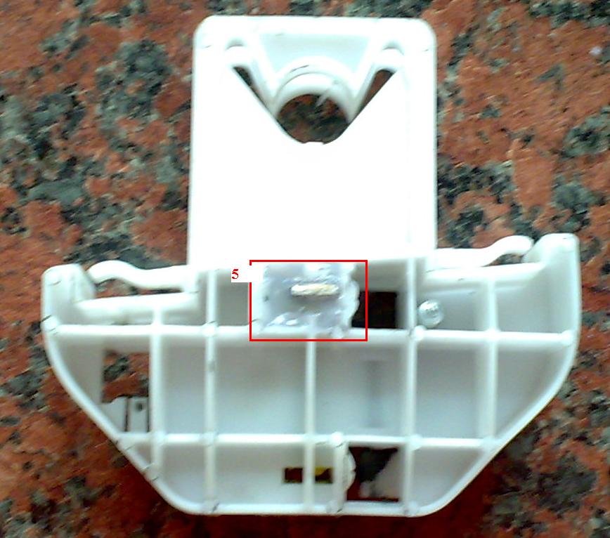 2- takhle vypadá kousek, který jsem nahradil šroubem s podložkou 3 5- kovový kousek z druhé strany 4- tenhle vymezovač taky nakonec nevydržel, takže znovu nahrazen šroubem