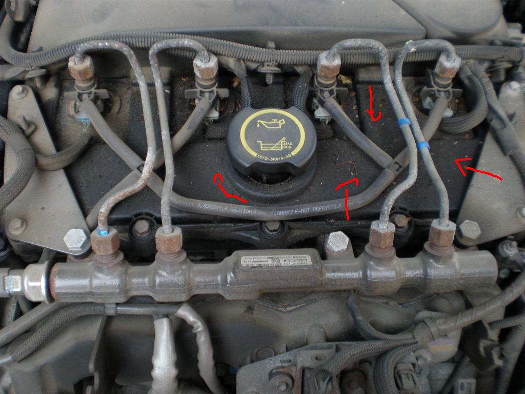 Ještě na fotkách z motoru zakreslím kde je olej který by tam být neměl nebo alespon zbytek.