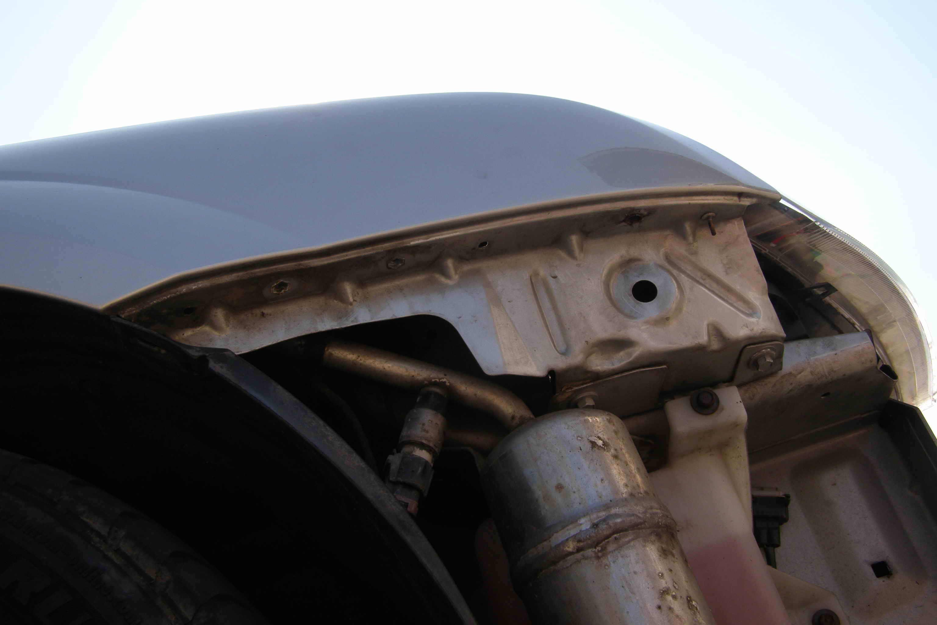 Podle mě ti tam chybí šrou a nebo je tam nastřelená taková tyčka a ta je nacvaklá v kousku plastu v nárazníku. Měl jsem docela problém to z toho vycvaknout. Tak pod to vlez a koukni se.