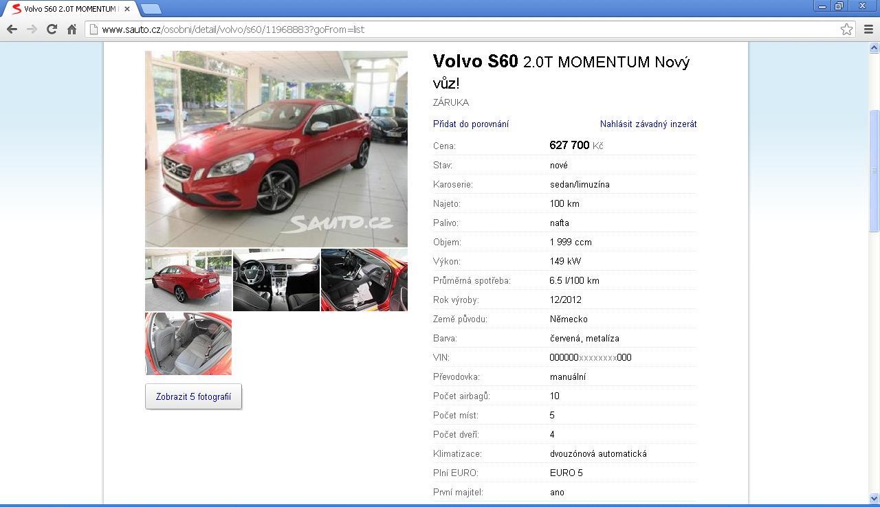 2. a 3. odkaz je stejný. Vysvětlení neuvedení VIN: Je to dovoz na zakázku a to uvádím i v inzerci. Pouze 10000,-Kč předem. O tento automobil (i o ostatní, které průběžně obměňuji) má zájem více autobazarů v ČR i v SR. Uvádět VIN by byla moje obchodní chyba: Každý ví, že auta mnou nabízená jsou po všech stránkách OK. O VIN by již nemuseli žádat a volat do zahraničí ani o záznamy v servisce, jelikož je jim jasné, že mám auta prověřená. Takže by nabídli o něco lepší cenu než já a můj klient se rozhodne pro firmu XY v domnění, že na něm nechce vydělat a nabídne mu lepší cenu, protože nezaplatí DPH, případně daň ze zisku, atd....