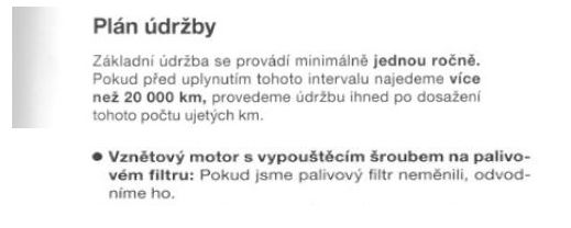 Nevidím důvod proč stále měnit filtr když servisní interval udává jasně 60 000km a po 20 000km nebo jednou ročně odvodnit viz. obr