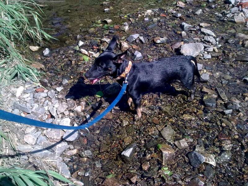 dneska je asi fakt vedro když už i muj pes vlez do vody a dokonce si tam na chvilku pak i lehnul