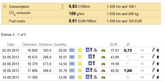 Stejna trasa vloni s FF2 1.6 za 11.2 tam a za 9.8 zpatky; a to jeste o trochu nizsi rychlosti.