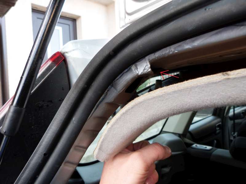 ,tak jsem se dal do bádání sám rozkryl jsem plasty a uvolnil stropnici nad kufrem, abych aspoň trochu viděl kudy to teče. Vzal hadici a poléval a nakonec jsem přišel, že to teče skrz spoj plechů u pantu. Jak je to schovaný za pantem tak to není moc vidět. To sem zalepil a pohoda a sucho