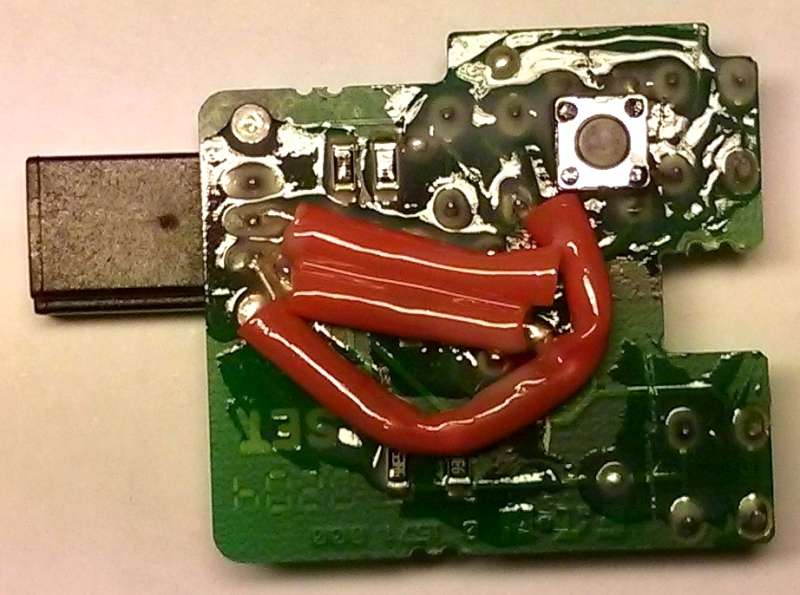 Na spínač rezistor, ze spínače propojku, aby se uzavřel obvod. Důležité je proškrábnout všechny cestičky na plošňáku co jdou od spínačů, aby se to tam nemíchalo dohromady.