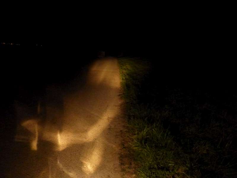 Jasne viditelne, ze svieti len pred autom, kde je prepaleny bod a vo vacsej vzdialenosti tma.