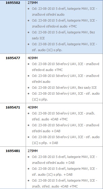 Co jsem fotil, tak je to z FF3 kombi(sundáno přímo z auta). Takže tam budou ještě další možnosti(jako že podle ecatu jsou!) a mají jiný provedení. Aby to nebylo jednoduchý... :dih: