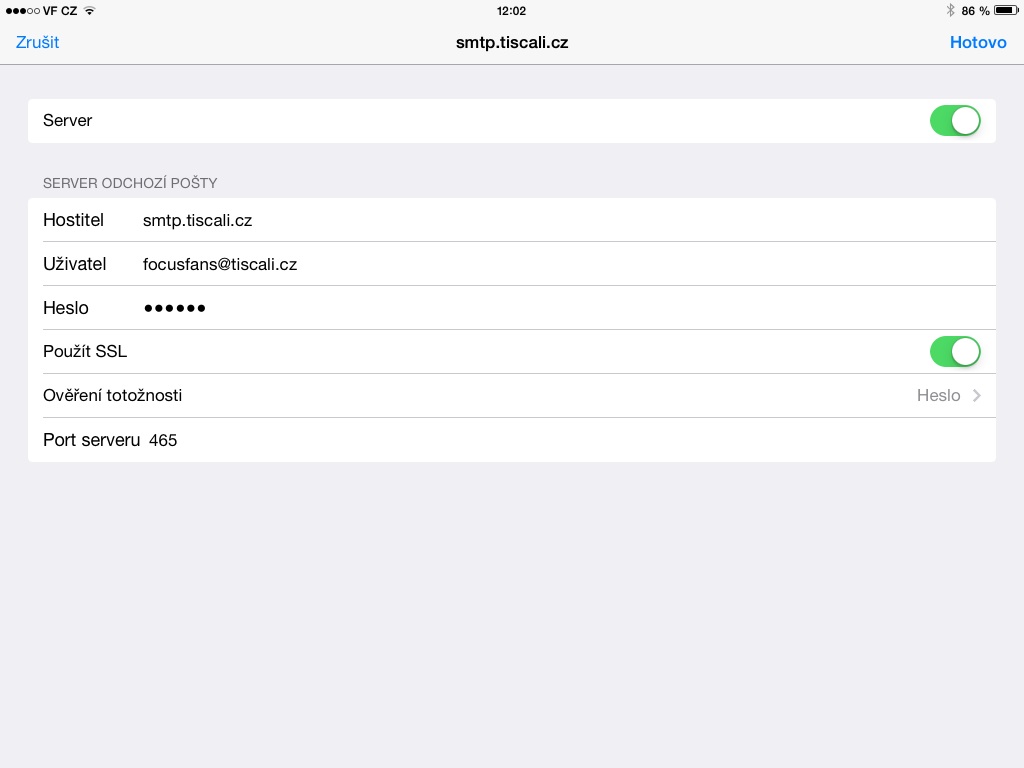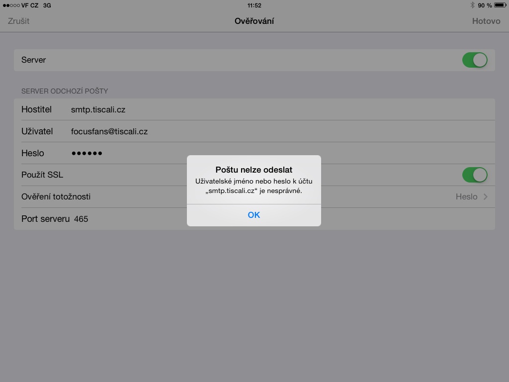 Jseš si jistý že username u SMTP ma byt focusfans@tiscali.cz ? Nemá to být jen focusfans ?