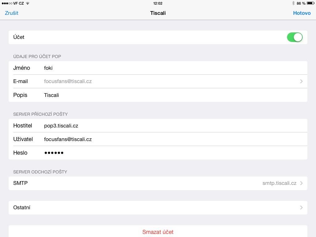 tohle funguje normalnePeS píše:Jseš si jistý že username u SMTP ma byt focusfans@tiscali.cz ? Nemá to být jen focusfans ?