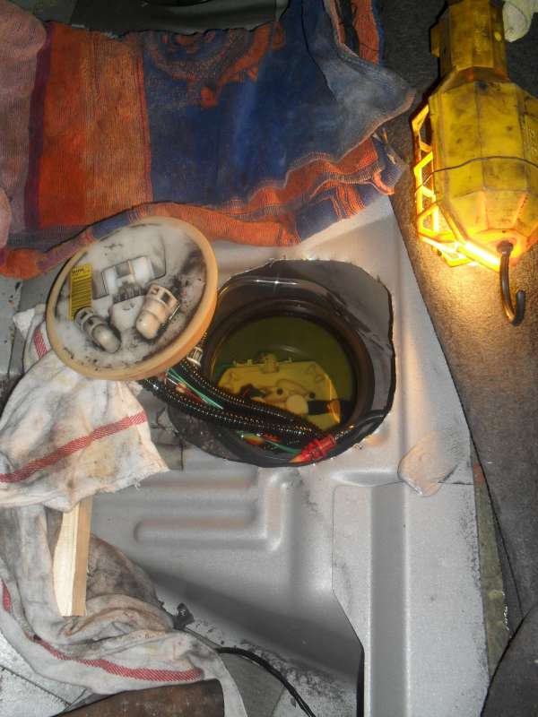 Samotné čerpadlo je vmontováno do takového plastového nesmyslu- hrnce a ten celý je upevněn do protikusu ve dnu nádrže. Nahoře je jen velká matka skrz kterou jdou dráty a hadičky. Pokud je to mokré od benzínu kolem té matky, tak je buď blbě dané těsnění, nebo ji je třeba dotáhnout. Pokud je mokro nahoře matky, tak propouští některá z hadiček ve spoji. Jsou tam O kroužky a ještě takové plastové kroužky, které to po nacvaknutí celé utěsní. Pokud se v tom někdo nesprávně hrabal, tak je možné, že to blbě složil, nebo tam něco pomrvil.