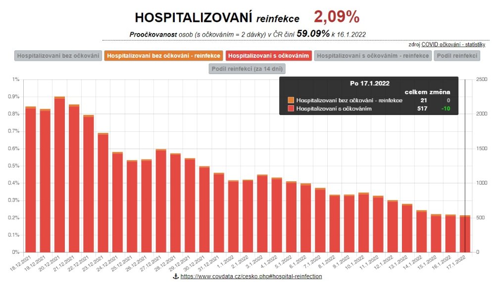Ano je, ale ne v nemocnicích... A stále ten poměr je jinde oproti očkovaným...fofok píše: 17.01.2022 19:50 Reinfekcí je hodně
