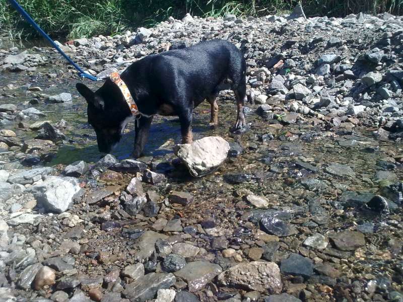 dneska je asi fakt vedro když už i muj pes vlez do vody a dokonce si tam na chvilku pak i lehnul