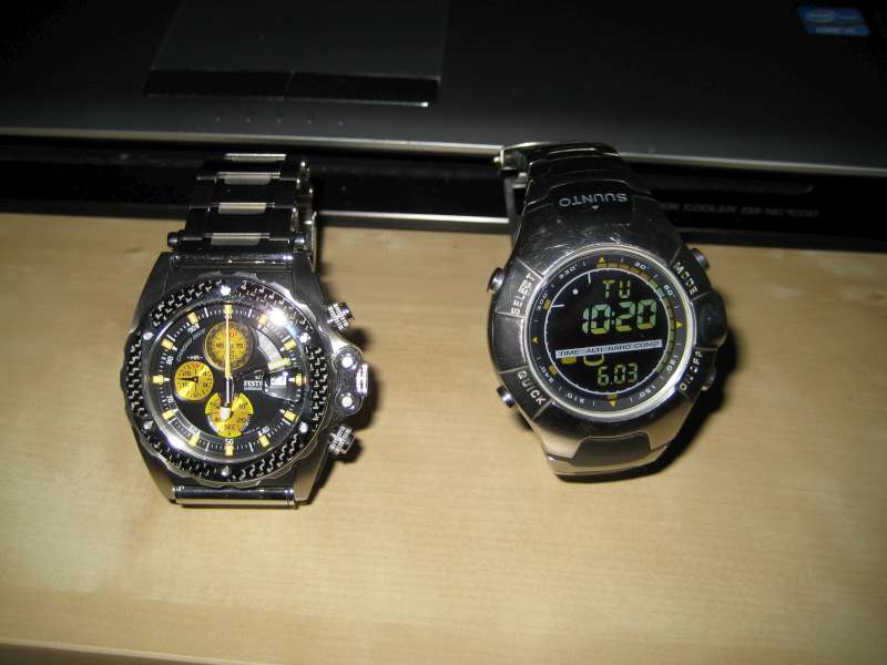 Tak tyhle se mi povalují doma, Suunto Observer steel (nezničitelné, mají toho dost za sebou) a jedny fajnovky Festina Tour de France, který jsem před 4 lety koupil a od tý doby je neměl na ruce