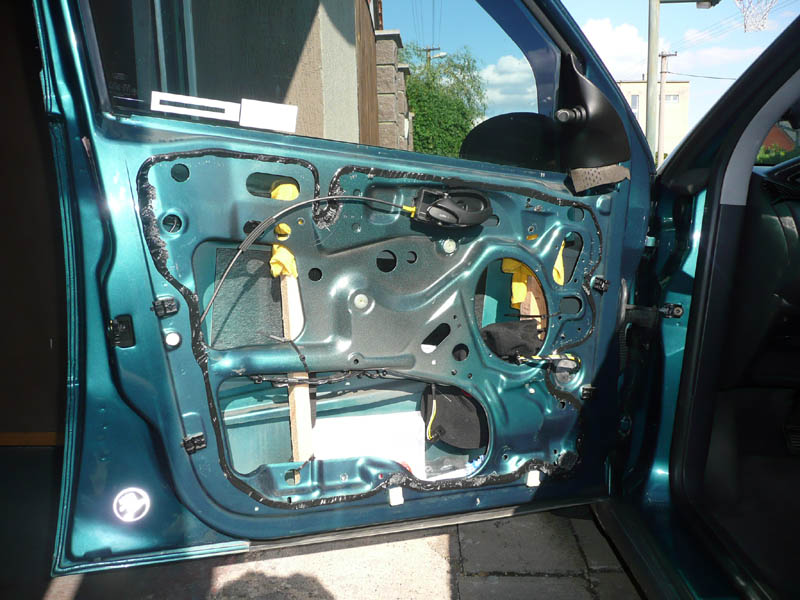 Poté můžeme zpět přilepit tenhle tlumící prvek.Mě se dost při demontáži potrhal,ale slepil jsem ho.Po obvodu ho drží taková mazlavá černá hmota.Nejlepší na oddělání je plastový odlamovací nůž a tu hmotu v prostředku rozkrojit.Tak zbyde na každé straně a při instalaci zpět se opět přilepí…