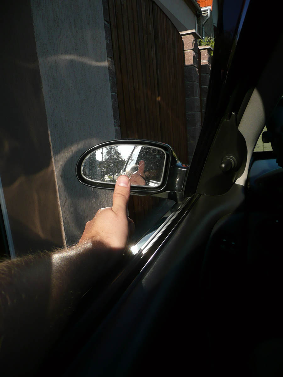 Takhle drží plastový trojúhelník se štelováním zrcátek.Pro sundání je třeba ho tlačit směrem k B sloupku a až to od těchto dvou spon odpadne,tak pak už ho drží jen jedna.Pak tedy zatáhnout směrem od dveří do interiéru…Chce to trochu síly…
