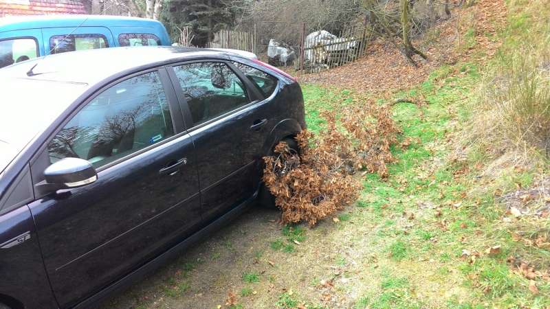 Koukám z cimry na auto a vedle auta leží cca 3m dlouhá větev (že bych ji při park.neviděl?)
